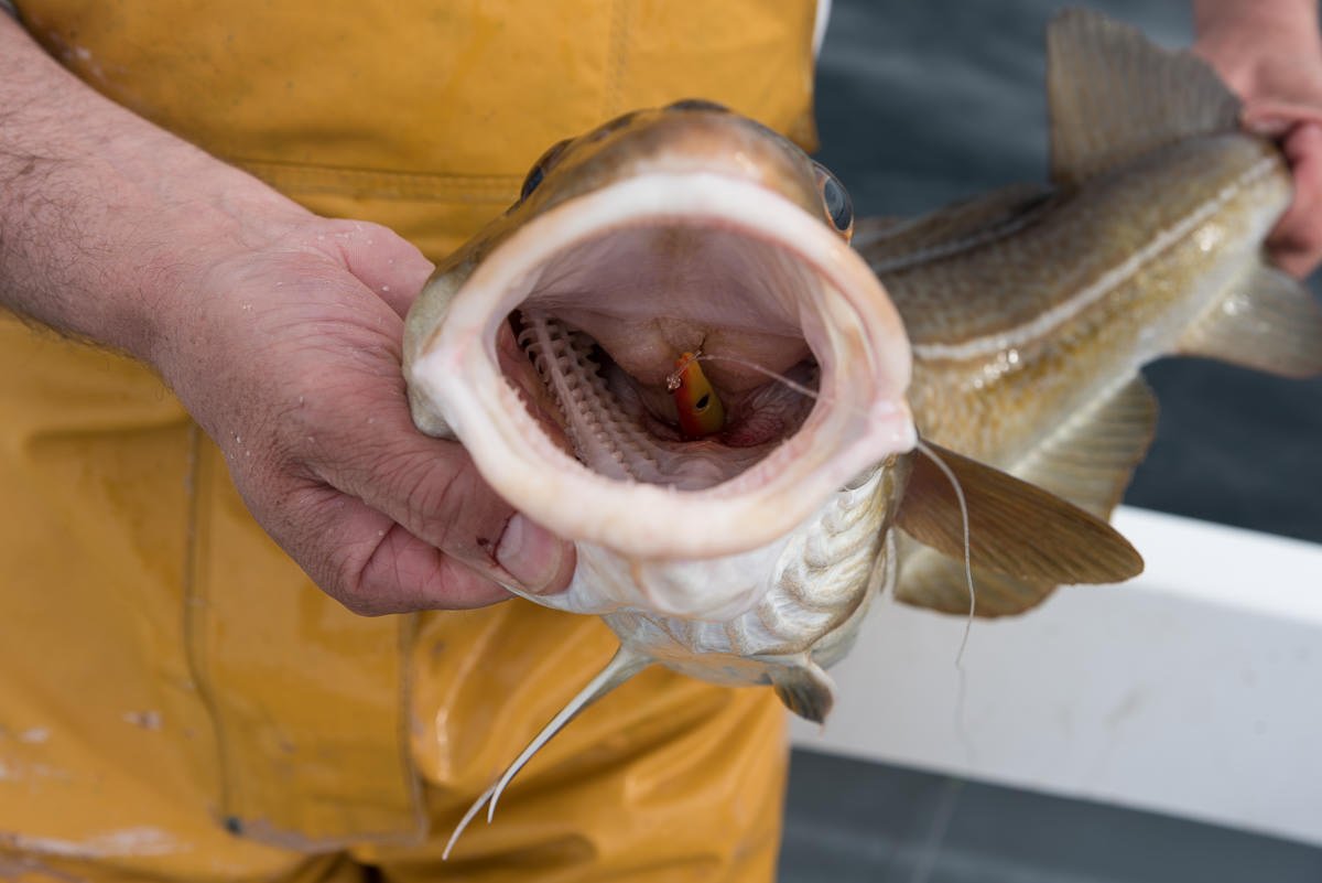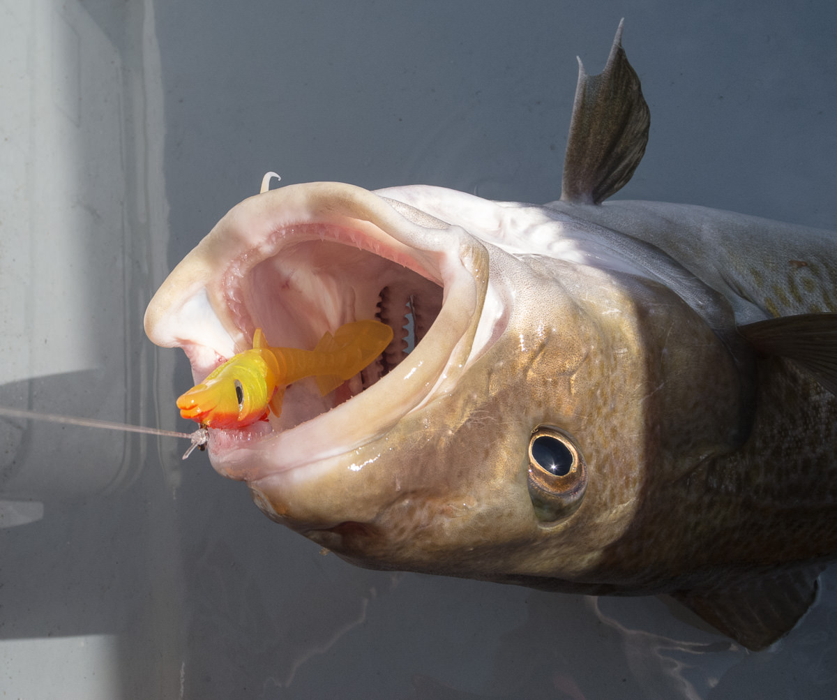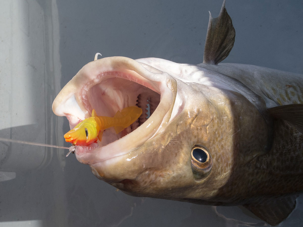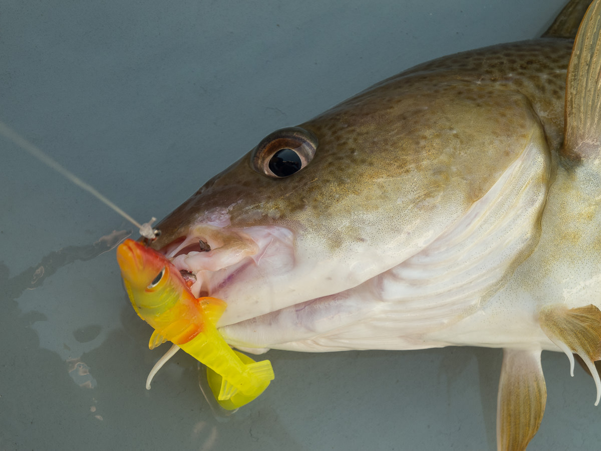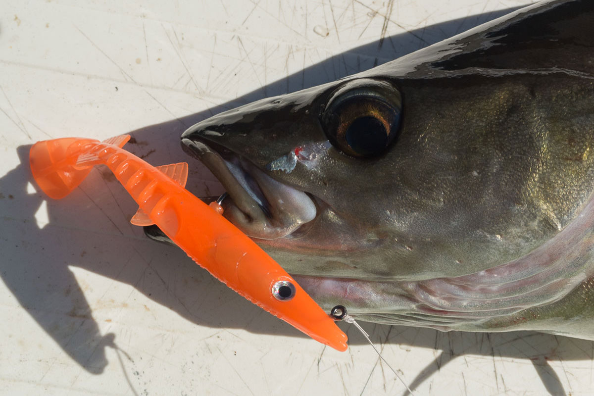 When I first tried out the 150mm version of the eel I was convinced that the hook was on the small side and that the body would obstruct the gape. Hours of fishing showed that my concerns were groundless with cod up to the mid-teens landed and very few fish were lost after attacking the lure. I struggled to obtain photos of fish with the lure in their mouths as the vast majority of the cod in particular engulfed the lures, the hooks being lodged in their throats. In a couple of cases I had to gut the cod for the table just to retrieve the eel.